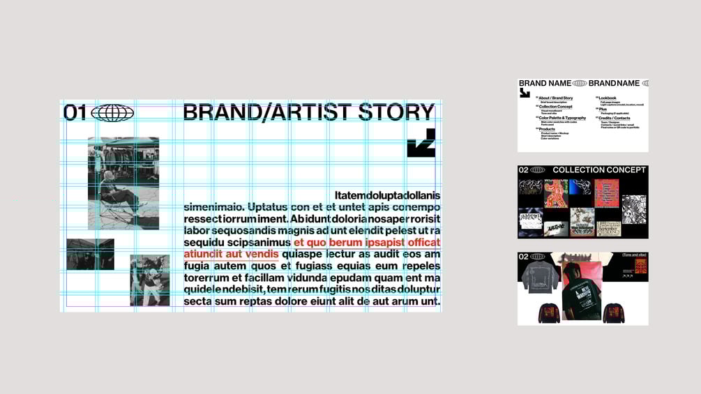 Whether you're a designer, artist, or indie brand, this editable template helps you present your drop with clarity and impact. Built in InDesign and fully customizable, it includes everything you need: from product mockups and lookbook pages to sizing, packaging and storytelling.